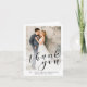 Tack till dina gäster i bröllop i stil med det här fotot på anpassningsbarna för elegant. Tack för att du viftade kortet. Den här typografiska designmallen har bild på framsidan i vitt med ord"Tack" och namn med bröllop-datum att anpassa. Insidan av kortet har ett andra foto på den lämnat och ditt tack och namnteckning på högerna på en vit bakgrund. Designad av konstnären Susan Coffey.