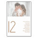 Elegant Photo Bröllop Vita Bordsnumret Bord Det Elegant Bordsnumret Photo Bröllop Vita är Bord för perfekt-, sommar- och fallbröllop. Bordsnumret har din favorit bild i kombination med klassiskt guld-typografi på en vit bakgrund. Den vackra designen är modern och eleganten, ge tecknet som en klasslig känsla.