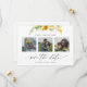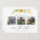 Meddela ditt bröllop-datum med den här eleganten, spara datumkortet med tre fotokollage. Konstruktion med vacker vattenfärgsfärg blommigt gräns i gult, senap och kryddnyanser. Fintvätt av delikat grönt med vattenfärg som överlappar bakom blommigt. Enkla fotomallar, lägg bara till din bild och Zazzle lägger till den på högernas plats och höger storlekt! Alternativ för att lägga till ett meddelande som du vill ha i bakgrunden. En blandning av blocktypografi och modern handskriven kalligrafi. En del av vår "vackra Gult och Ochre Blommigt Collection" med en mängd olika samordningsprodukter tillgängliga. Besök hela samlingen på https://www.zazzle.com/collections/beautiful_yellow_and_ochre_floral_collection-119581608931129846