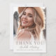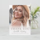 A simple and elegant graduation thank you card with a light, modern, boho-inspired feel. The front features a full-page photo with a soft white gradient at the bottom, where a large “Thank You” is displayed prominently. Beneath it, the graduate’s name, school, and year are shown in a stylish mix of classic and handwritten fonts for a clean yet personal look.