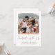 Elegant eller bröllop-annonsering och mottagning efter bröllop eller festinbjudan. Framsidan har ditt foto, "Firar med oss" i ett skript i chic guld och ditt första namn, bröllop-datum och plats i enkel modern guld-typografi. Anpassa din aviserings- och mottagningsinbjudan till bröllop och lägg till ditt gifta namn i ett namnteckning skript.