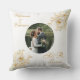 Anpassningsbar Elegant Foto Guld white blommigt monogram logotyp bröllop dekorativ kudde. Perfekten är en unik gåva till nygifta och gynnar bröllop gäster. Lätt att anpassa datum för foto, bridtrimning av namn, initialer och bröllop. Hämta din i dag!
