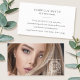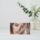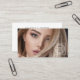Create a stylish and professional business card to showcase your brand. This editable template features classic typography and a clean, sophisticated aesthetic. Upload your photo and company logo, then personalize the text with your name, job title, phone number, email, website, social media username, and address. It offers fully customizable text to fit your unique business needs. This chic, minimalist design is ideal for various businesses, including makeup artists, hair and beauty salons, massage therapists, stylists, boutiques, small businesses and many others. Business cards are a powerful marketing asset, providing a simple method to exchange contact information and create a lasting first impression on prospective clients. Printing colors: dark gray and white, or customize the color to align with your brand. Explore the online collection for matching printed designs!