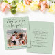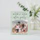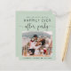 Elegant budgetvänlig resa grönt spara datum meddelande för en bröllopsmottagning eller party för att fira ditt elopement eller bröllop. På framsidan visas fotot och "Spara datum för vår lyckligtvis allt efter Party" i enkel typografi och ett skript med chic med dekorationer. Lägg till ditt första namn- och mottagningsdatum under fotot. På motsatt sida anpassar du ditt meddelande och lägger till party eller mottagningen och sparar datuminformationen och namnen i ett namnteckning skript.