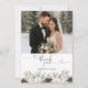 Jag vill uttrycka er uppriktiga tacksamhet i säsong stil med vårt tackkort för Vinter-Gräs-foto-Bröllop i Elegant. Det här kortet har mjuka vita blommigtar, spottar i eviga grönska accenter och rustika finare konsekunder och ger dig charmen från ett vinterskog till din post-bröllop-korrespondens - perfekt för par som firade ett bröllop i december, januari eller februari eller en julafton bröllop. På kortets framsida visas ditt favoritfoto från bröllop, medan baksidan erbjuder gott om utrymme för ett personligt meddelande som tackar dina kära för deras stöd, gåvor och närvaro på din speciella dag.