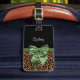 Resa i mode med denna stilfulla bruna märkre för bagage för pälsleopardtrycket med ett elegantt oliv grönt band som binds in i en chic pilbåge. Personifiera denna moderna och flott djura tryckdesign, genom att tillfoga ditt namn. Den utskrivavna lägenheten avbildar, inte faktisk päls eller bandet.