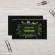 Make a sophisticated and distinctly natural statement with this elegant botanical business card. The design features a dramatic, solid black background, providing a luxurious canvas for a lush arrangement of realistic evergreen foliage. A dense border composed of deep green pine needles, vibrant green fern fronds, and subtle touches of olive green buds or seeds creates a stunning, natural frame. This exquisite botanical display surrounds a deep, dark green rectangular panel, perfectly centered and enclosed by a minimalist, thin matching border, offering a refined space for your professional details. This design captures the serene elegance of a deep forest. These business cards are ideal for professionals connected to nature, forestry, or elegant rustic design, such as landscape architects, environmental consultants, artisans working with wood, boutique cabin rentals or lodges, Christmas tree farms, or brands emphasizing natural ingredients. This versatile design can also be adapted for elegant event place cards, sophisticated product tags, or as a unique contact card for any modern professional.