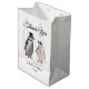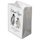 Elegant pingvinpar och blommor på Vit Tack Bröllopsgåva Väska. Text redo att anpassas för bröllop, förlovning, årsdag och mer! En romantisk souvenir för alla! Pingviner symboliserar evig kärlek!