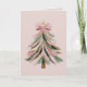 Elegant Pink and Green Brushstroke Christmas Tree Kort