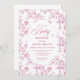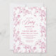 Celebrate your upcoming arrival with this elegant baby shower invitation featuring classic French toile de Jouy roses. Soft dusty pink, blush, and pink and white floral patterns create a timeless, romantic look accented by refined rose gold tones. Professionally printed by Zazzle, this design offers crisp details, beautiful color balance, and a smooth, high-quality finish that highlights the intricate rose pattern. Perfect for a classic, floral, or vintage-inspired baby shower, this invitation is fully customizable and arrives polished and photo-ready. A charming choice for welcoming baby with graceful, traditional floral style.