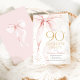 Elegant Pink Bow 90th Birthday Invitation Inbjudningar