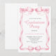 Elegant pink bow graduation party invitation. Featuring delicate pink watercolor bows and ribbon. Personalize with your own information.