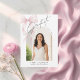 Share your graduate’s exciting milestone with this elegant, modern announcement featuring watercolor pink ribbon illustration, elegant script lettering, and a full‑photo layout that highlights the graduate. The back is left blank for a sleek, uncluttered finish or optional handwritten notes. A beautiful choice for celebrating with simplicity and class.