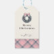 Elegant Pink Coquette Xmas Wreath Preppy Plaid Presentetikett