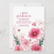 Invite your guests with the fresh, romantic charm of this elegant wedding invitation. The design features a stunning, painterly watercolor arrangement blooming across the bottom edge against a clean white background. Vibrant pink cosmos flowers, in shades ranging from soft blush to deep magenta, take center stage, accented by airy clusters of delicate pink baby's breath (gypsophila). Sprigs of dusty sage-green eucalyptus leaves are thoughtfully placed, adding a touch of modern greenery and natural elegance. This beautiful botanical border creates a light, joyful, and contemporary feel, perfect for a spring or summer celebration. Ideal for spring or summer weddings, this invitation design is also perfect for bridal showers, garden parties, milestone birthdays, baby showers, or any event calling for a touch of fresh floral beauty. This versatile design can also be adapted for sophisticated corporate events, seasonal promotions, or elegant announcements requiring a modern, romantic touch.