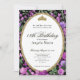 This elegant pink and purple floral 18th birthday debut invitation has roses, a gold tiara crown, and a gold oval frame with a personalizable template to create your own message. The invitation template is customizable in the listing editor and is also available as a digital download that's printable after you personalize it. The back has a customizable photo where you can add your own picture to create your own debut invitation.