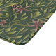 Seamless pattern featuring pink flowers and green leaves on a dark background. The arrangement is symmetrical, evoking a natural, elegant feel.