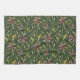 Seamless pattern featuring pink flowers and green leaves on a dark background. The arrangement is symmetrical, evoking a natural, elegant feel.