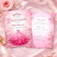Celebrate her special day in dazzling style with this glamorous Quinceañera invitation! Featuring a dramatic pink and fuchsia ombré ball gown adorned with glitter highlights and a floating crystal tiara, this design captures the essence of a modern princess celebration. The soft blush background with bokeh sparkles adds an ethereal touch, while the blank center leaves space for your personalized event details. Perfect for sweet fifteen celebrations with a feminine, luxurious, and magical aesthetic.