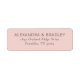 This elegant label features a clean, modern design with a soft pink background and dark gray text. The layout is simple and centered, showcasing customizable name and address fields in a mix of sans-serif and serif fonts for a sophisticated look. Perfect for formal occasions, the minimalist style emphasizes clarity and personalization, making it ideal for weddings or special events. The calm and refined mood evokes timelessness, ensuring your details stand out beautifully.