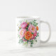 Start every morning with timeless floral beauty. This elegant ceramic coffee mug features soft watercolor-style pink and orange peonies with lush green leaves for a romantic, cottage-inspired look.