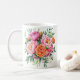 Start every morning with timeless floral beauty. This elegant ceramic coffee mug features soft watercolor-style pink and orange peonies with lush green leaves for a romantic, cottage-inspired look.