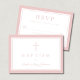 Elegant Pink Religious Cross Girl Baptism RSVP Card.