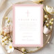 Elegant Pink Religious Cross Girl Baptism Tack Kort