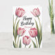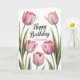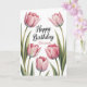 Elegant Pink Tulip Floral Birthday Kort