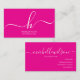 Elegant Pink White Monogram Initial Script Name Visitkort