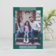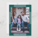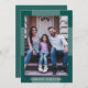 Klassisk och elegant grön julplaidtryck med God Jul-hälsning och foto på framsidan, och en grön baksida av kortet med vänlig högtidsmeddelande i vit text.