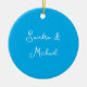 Elegant Plain Azure Blue Personlig Anpassningsbar Julgransprydnad Keramik