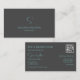 Elegant Plain Grått Teal med Monogram och QR- kod Visitkort