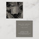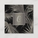 Gör ett bestående intryck med ett sofistikerat kvadratiskt affärskort med en mönster av handflatan fronder i platina över en svart bakgrund. En matchande kvadrat ram omger ditt monogram eller företagets logotyp elegant. Kortets baksida är en motsvarande solid platinum färg.