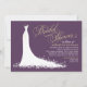 En förtrollande bröllopsdusch-inbjudan med en graciös vit bröllopskjol med fantasifull blomsterutsmyckning och fjärilar mot en djup plommonfärgad bakgrund. Champagne-guld-kalligrafi ger en förfinad värme till designen. Den koordinerade champagnejfjärilsmönstret bakar kortet. Fullständigt redigerbar text låter dig anpassa varje detalj för din duschfirande.
