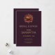 Set against a rich deep plum background, luminous gold typography and a striking lotus flower motif create a moody, luxurious aesthetic with subtle gothic influence. The portrait format allows for a graceful visual hierarchy, placing emphasis on the guest of honor while maintaining a clean, balanced composition.