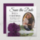 Elegant Plum Lila Ro med Oval Photo Bröllop Spara Datumet