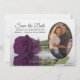 De här vackra korten är perfekten för att låta dina vänner och din familj veta att spara datumet för ditt kommande bröllop. De har en romantisk design med en enda lila eller ro av äggplanta i en bassäng i vatten som reflekterar med vågar och krämer med foto i en ovalformad ram. Rubriken läser Spara datum med utrymme för namnen, datum och plats.