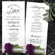 Detta vackra bröllopsprogram har en elegant som har en enda lila av plommon eller färgad av äggplanta i blek ro som ljuger på sin sida och reflekterar i vatten. Rubrikerna är skrivna i finare-manusjografi, och det finns utrymme för din ceremoni och bröllopsfest, samt ett kort-tack för dina gäster. Underbart sätt att välkomna dina vänner och din familj till bröllop firande.