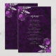 Denna eleganta bröllopsmeny har plumblommiga buketter som kontrasteras med silver falskt bladverk i två hörn, på en bakgrundsbild av lila akvarell agat. Den anpassningsbara texten kombinerar silvergrå serif och handskriven typsnitt. Baksidan har en matchande lila och silver blommig och agat-design.