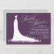 Elegant inbjudningskort för möhippan för snyggten brid to be har ett ornate calligraphy-skriptteckensnitt och en flytande bröllop-gryga. Rullans blomning, blommor och fjäril-detaljer visar den eteriska klänningen. Vit, platinum grått och färg för lila av djupplommon/äggplanta.