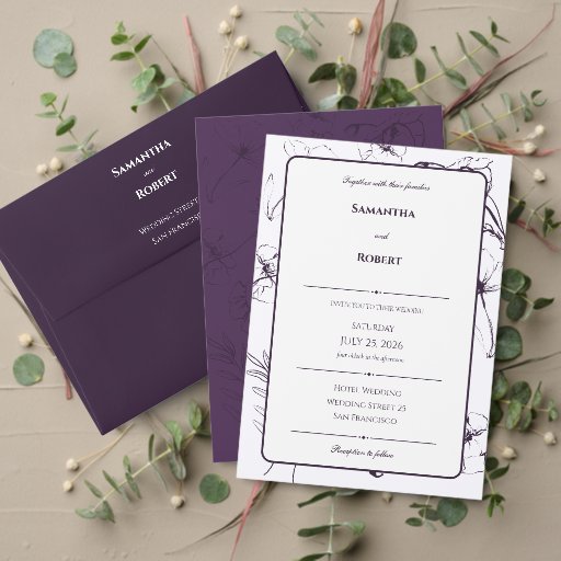 Elegant Plum Purple Floral Line Art Wedding SuiteDesignad av Marija Stefanov