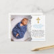 Tack gästerna för att de närvarade vid Baptism eller vid julklappningen av ditt lilla pojke med det här moderna, vackra tack som du vykort. Utformning med foto av baby, blommigt ram guld kor och ert budskap på framsidan, guld kor och blommigt guld ram på baksidan. Tveka inte att kontakta mig om du behöver hjälp med den här utformningen.