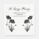 Luncheonblöjor till en begravning med vackra silhuetter av poppor mot en vit bakgrund. I kärleksminnet skrivs över den pappra napkin i ett underbart skript. Lägg till din kära namn och dina levnadsår.