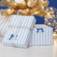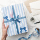 Lägg till en touch av sofistikering till dina presenter med detta eleganta blåa band och randiga presentpapper. Den mjuka pastellbakgrunden i kombination med snygga vertikala ränder och charmiga blå band ger dina presenter en förfinad och tidlös look. Perfekt för födelsedagar, baby shower, bröllop och speciella firanden, denna högkvalitativa presentpapperrulle ger stil och elegans till varje paket.
