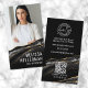 Affärskort för Lodrät av Logotyp för svartmålsfotogenkodsfotogendikatorn och Guld-. Affärskortet för elegant lodrät kombinerar elegans och modernt stil, perfekt för företagsägare, småföretagsägare, frilansare och konsulter som vill framträda. Framsidan har en fet svart bakgrund med vitt typsnitt, accentuerad av en slående svart och guld agate-design med guld glitter som detaljerar längs grund kant för en lyxfärgad beröring. Ditt foto, din logotyp, namn och din titel eller ditt företag namn visas i en vass och professionell layout. Baksidan fortsätter den svarta bakgrunden med matchande agat- och glitter-accenter längs grund, och ser sammanhängande och sofistikerad ut. White typsnitt markerar din kontaktinformation, en skannerbar QR-kod för snabba anslutningar och polerade social-medieikoner parade med frasen "Connect with us!" för en modern avsluta. Den här förfinade utformningen och utformningen av eleganten fungerar för vilket varumärke som helst och är helt och hållet anpassade för att passa ditt stil eller ditt företag.