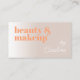 Vacker elegant minimalistisk konstnärlig sminkartist företagsaffärskort. Modernt ljust neutralt taupe elfenbensvitt beige brunt färgat företagsaffärskort med en modern retro och minimalistisk solig sommar orange och sofistikerad klassisk vit typsnitt. Klicka på 'Anpassa' för att hitta mallen redo att anpassas med ditt unika företagsnamn, yrke och kontaktinformation, text och QR-kod som du väljer. Denna speciella söta och unika design gjordes för dem som gillar sofistikerade klassiska starka designs.