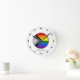 Väggklocka: Eleganten Progress Rainbow flagga klockas med personlig text / namn "One Kärlek".