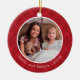 Denna tidlösa design presenterar en bild i centrera och en röd plädstruktur i bakgrunden. Baksidaen av prydnaden inkluderar ordglädjen i stora vitbrev på en röd bakgrund. Brev "nolla" har en blommigt att specificera som tillfogar ett delikat och unikt handlag. Denna ska prydnad gör en underbar minnessak för år till komen.