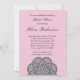 Elegant och flott inbjudningskort för möhippan. Presenterar en doilysilhouette på en fast färgbakgrund med elegant bokstäver. Underbar för en sofistikerad brud. Moderiktig färgkombination. Polka dots mönstrar på baksida. Tillfoga ditt egna uttrycka.